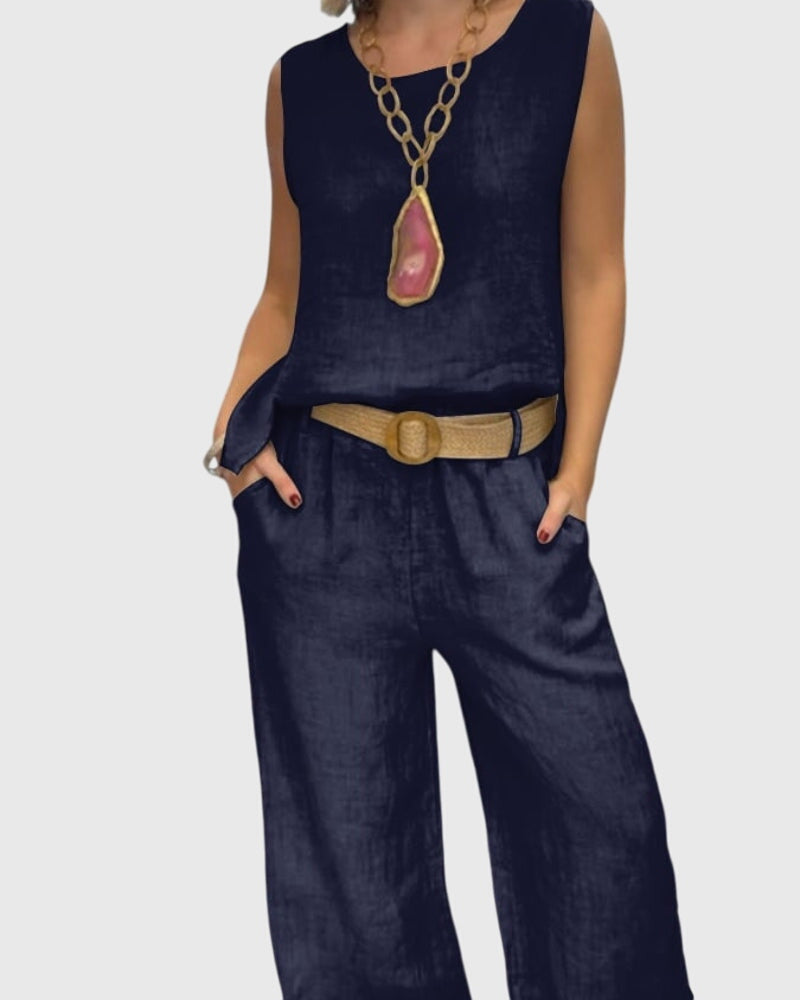 • Effortless Chic: This two-piece set combines a sleeveless top and wide-leg pants for an effortlessly stylish look.